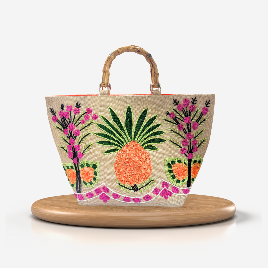 Home About Us Our Collections Designer Shoulder Bag Party Bags Beaded Clutch Bags Beaded Coin Small Pouch Tote Bag Cowhide Leather Bags Duffle Bag Beaded Belts Contact Us X Tote Bag Motif Tote 001 Nazar Tote Island Getaway Meadow Mosaic Floral Bunch Tote PiineappleYard Motif Tote-002 The Luster Sling Pineapple Yard Humming Hue Leopard Luxe Roaring Lion